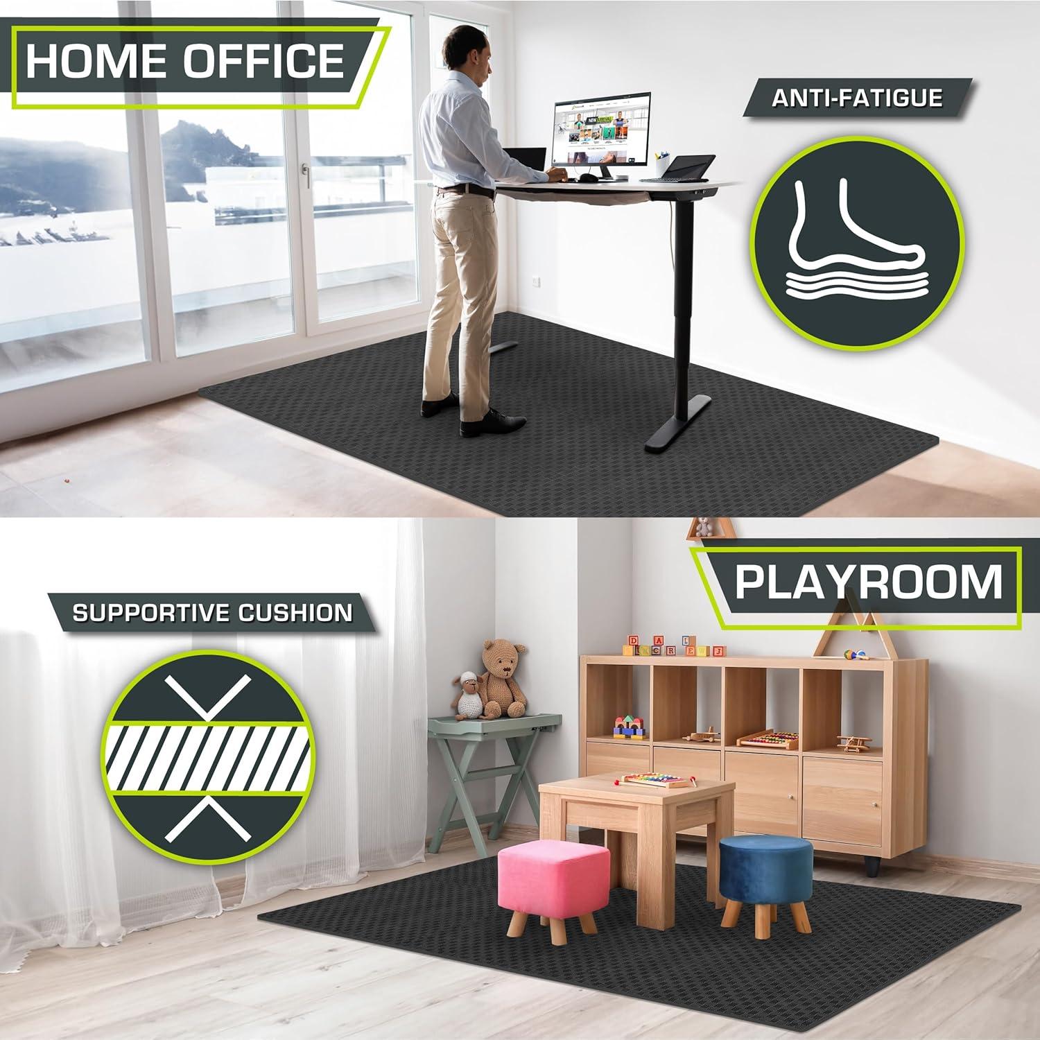 Forget juggling deadlines and downward dogs – the ProsourceFit Puzzle Mat turns your everyday space into an instant workout haven! Six clever tiles (24 square feet of fitness) transform your office into a work-gym, your basement into a sweat cave, or any room into an exercise oasis. Need more space? No sweat – snap on extra tiles like puzzle pieces. Plus, say goodbye to rogue desks and treadmill migrations – the checkered surface of the tile mat grips like nobody's business. But the magic doesn't stop there. This EVA foam wonder floor is waterproof, shock-absorbing and versatile enough for burpees, playtime, or just making the floor a little easier on your tired body. So ditch the excuses and embrace the revolution – your versatile floor for exercise is a home gym floor mat away.