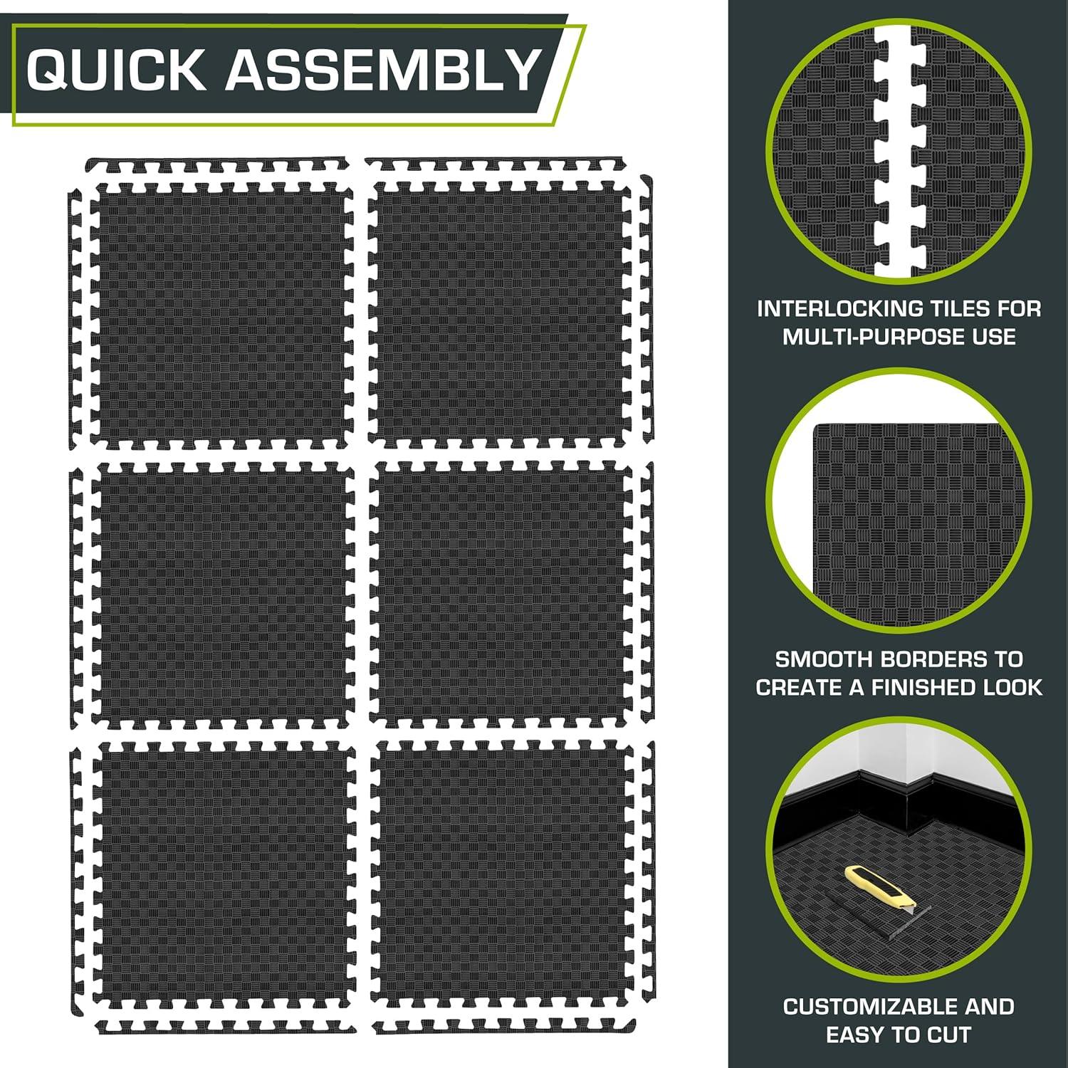VERSATILE USE – These 24×24 foam floor tiles act as garage floor mats, durable gym floor mats, transform rooms as kids play mats and create comfortable sanctuaries as traditional exercise mats