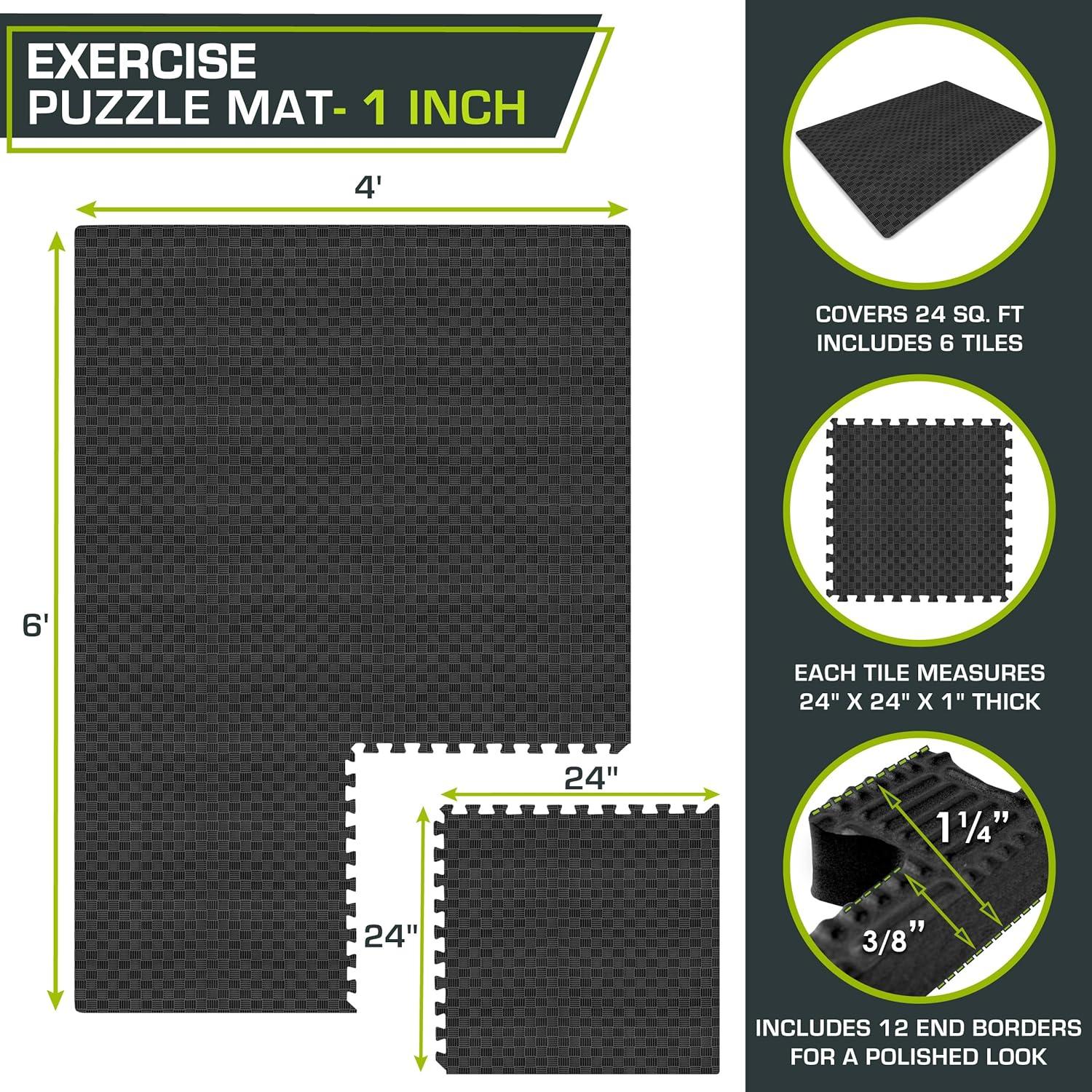 ProsourceFit Exercise Puzzle Mat 1-in, Checkered EVA Foam Floor Tiles w/ Non-Slip Texture, Gym Mat w/ Interlocking Foam Tiles for Adjustable Surface, Shock Absorbing, Waterproof Gym Flooring, Blue(Black - 1 Inch - 6 Tiles - 24 Sq Ft)